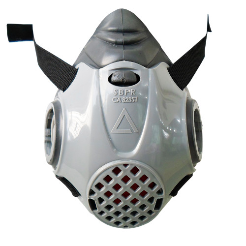 A máscara semifacial ABSOLUTE é um respirador purificador de ar de segurança, tipo peça semifacial, com corpo que conjuga um suporte externo confeccionado em material plástico rígido na cor cinza em sua parte central e o restante da peça facial em elastômero termoplástico cinza.
